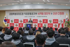 (포탈뉴스통신) 강원특별자치도는 2월 23일 오후 3시 도청 별관 대회의실에서 ‘강원특별자치도청 사격팀’ 공식 창단식을 개최했다. 이번 창단은 1987년 펜싱팀 창단 이후 12번째이자, 2020년 루지팀 창단 이후 6년 만에 새롭게 출범한 도청 직장운동경기부다. 이로써, 도내 사격 실업팀은 도청, 정선, 고성 등 총 3개 팀으로 확대됐으며, 유소년부터 실업팀까지 이어지는 계열화 체계를 더욱 공고히 하게 됐다. 이는 지역 인재가 타시도로 유출되지 않고 고향에서 선수 생활을 이어갈 수 있는 기반을 마련했다는 점에서 의미가 크다. 또한, 선수단 전원이 강원 연고자로 구성돼 지역 체육의 성장 모델을 보여주고 있으며, 강원의 체육 인프라 속에서 성장한 선수들이 강원특별자치도의 이름을 달고 승리의 과녁을 정조준하게 됐다. 도는 최근 제106회 전국체전 종합 6위 달성, 전국장애인동계체전 사상 첫 종합우승 등 강원 체육의 상승세를 이어가고 있다. 사격팀은 이러한 흐름을 바탕으로 제107회 전국체육대회에서 ‘종합 6위 수성’의 핵심 동력이 될 것으로 기대된다. 아울러 2026