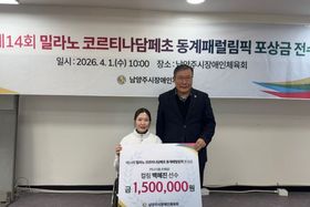 (포탈뉴스통신) 남양주시는 지난 1일 남양주시장애인체육회가 제14회 밀라노-코르티나담페초 동계패럴림픽 휠체어컬링 믹스더블 종목 은메달리스트 백혜진 선수에게 포상금을 전달하고 성과를 격려했다고 2일 밝혔다. 이번 행사는 국제 대회에서 값진 성과를 거둔 선수의 노력과 헌신을 기리기 위해 마련됐다. 이날 전달식에는 백혜진 선수와 배우자인 남봉광 선수, 관계자 등이 참석했다. 행사에서는 포상금 전달과 기념 촬영, 차담회가 진행됐다. 손기남 남양주시장애인체육회 수석부회장은 직접 포상금을 전달하며 축하의 뜻을 전했다. 백혜진 선수는 2022년 베이징 동계패럴림픽 휠체어컬링 6위를 시작으로 꾸준한 성장세를 이어왔다. △2024년 아시아 휠체어컬링 선수권대회 1위 △2025년 코리아 휠체어 믹스더블 컬링리그 1위 △2026년 제23회 전국 장애인 동계체육대회 휠체어컬링 믹스더블 1위 등 우수한 성적을 거뒀다. 이번 대회에서도 은메달을 획득하며 국제무대에서 경쟁력을 다시 한번 입증했다. 손기남 수석부회장은 “백혜진 선수가 보여준 값진 성과는 시민 모두에게 큰 감동과 자부심을 안겨줬다”며 “휠체어컬링 종목 활성화 및
