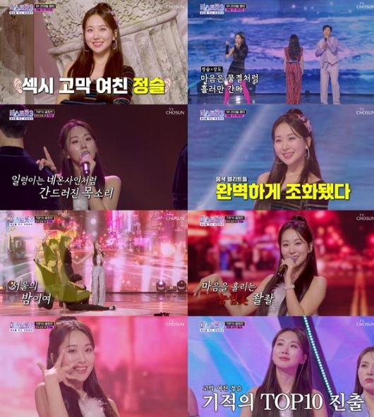 이어지는 TOP 10 결정전에서는 한혜진의 ‘서울의 밤’으로 전매특허 가창력과 퍼포먼스까지 모두 챙겼다. 무대 시작 전 “이 무대를 통해 제가 누구인지를 꼭 보여드리겠다”며 각오를 밝힌 정슬은 섹시한 목소리로 무대의 포문을 열며 현장의 분위기를 후끈 달아오르게 했다.