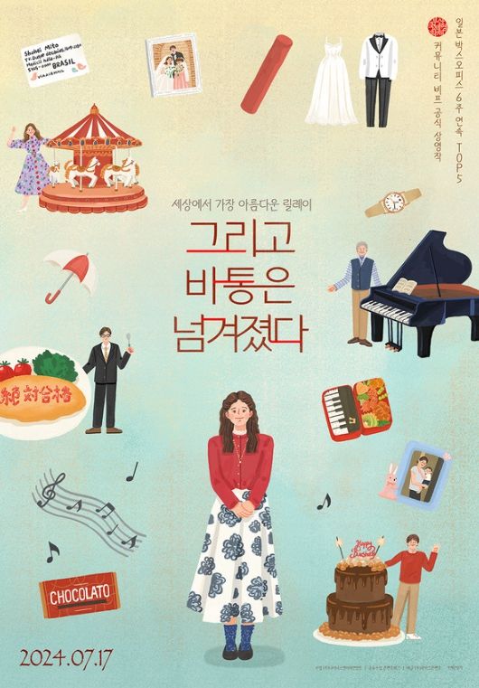 '그리고 바통은 넘겨졌다'는 대책 없이 자유로운 새엄마 ‘리카’ 덕분에 두 명의 엄마, 세 명의 아빠 손에 자란 ‘유코’와 특별할 수밖에 없었던 가족의 사랑스러운 비밀을 그린 감동 드라마로, 제16회 일본 서점대상 수상작이자 누적 판매 부수 120만 부를 돌파한 세오 마이코 작가 동명의 걸작 베스트셀러를 영화화한 작품이다.