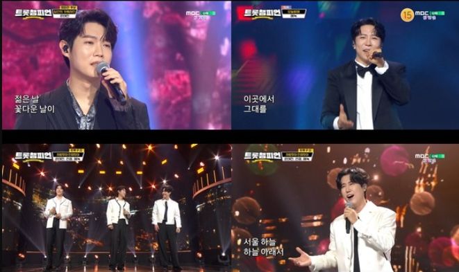 이후 손태진과 에녹은 신성과 함께 '신에손'으로 무대에 올라 프리미엄 스테이지를 꾸몄다. '사랑찾아 인생찾아'를 선곡한 '신에손'은 탄탄한 보컬과 발성으로 꽉 찬 존재감을 보여줬다. 특히 세 사람이 보여준 완벽한 합의 하모니가 콘서트를 방불케 했다.
