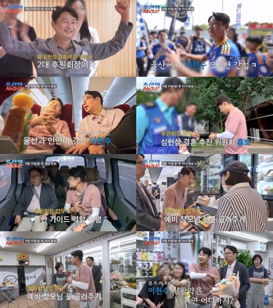 19일 방송될 ‘조선의 사랑꾼’에서는 심현섭과 전 축구 국가대표이자 ‘울산 현대 레전드’ 이천수가 꼭두새벽부터 고속열차를 타고 울산으로 향한다.