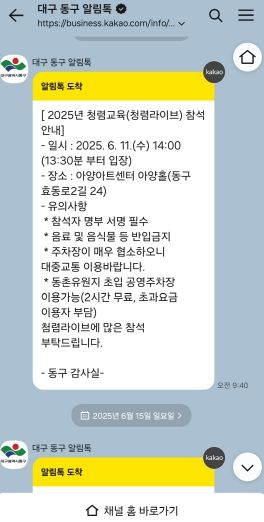 (포탈뉴스통신) 대구 동구청 ‘스마트 통합메시징 시스템’이 대구광역시가 주관하는 2025년 생활밀접 민원제도개선 우수사례에서 장려상을 받았다. 이번 수상으로 대구 동구는 대구광역시장상을 비롯해 50만원의 상금을 받게 됐다.