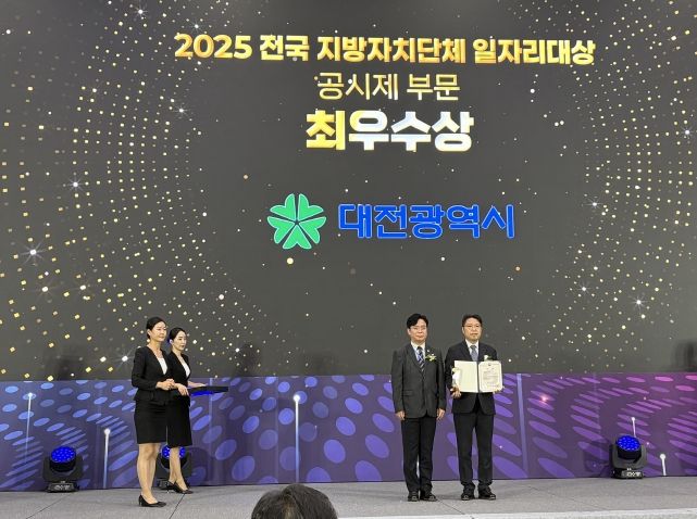 (포탈뉴스통신) 대전시는 30일 청주 오스코에서 열린 고용노동부 주관 ‘2025 전국 지방자치단체 일자리대상’ 시상식에서 ▲일자리 공시제 부문 최우수상 ▲우수사업 부문 우수상을 동시에 받으며 4년 연속 수상의 영예를 안았다.