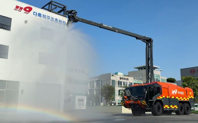 전자동·주행 중 방수 기능, 굴절붐, 열화상카메라 등 첨단 장비가 장착돼 고위험 화재 현장에서 최적의 진압 효과를 발휘할 수 있다.