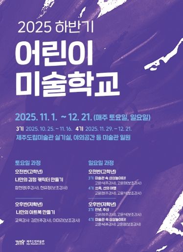 (포탈뉴스통신) 제주특별자치도 도립미술관(관장 이종후)은 10월 25일부터 12월 21일까지 ‘2025 어린이 미술학교’ 하반기 교육프로그램을 운영한다.