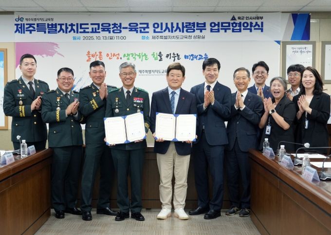 (포탈뉴스통신) 제주특별자치도교육청은 13일 도교육청 상황실에서 육군 인사사령부와 고등학생들의 진로 탐색 기회 확대를 위한 업무협약을 체결했다.