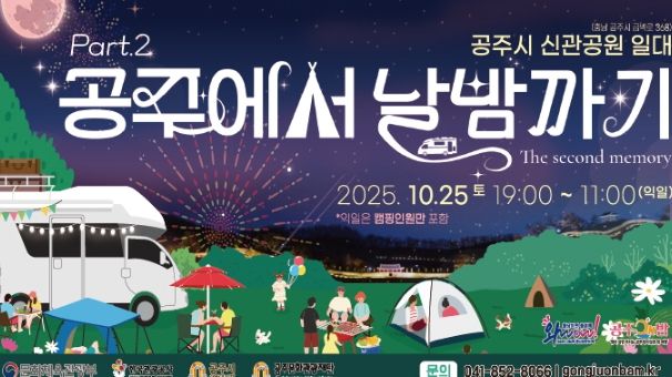 (포탈뉴스통신) 충청권에서 유일하게 문화체육관광부 ‘야간관광 특화도시’로 선정된 공주시가 오는 10월 25일부터 26일까지 금강신관공원 일원에서 ‘공주에서 날밤까기’ 행사를 개최한다.