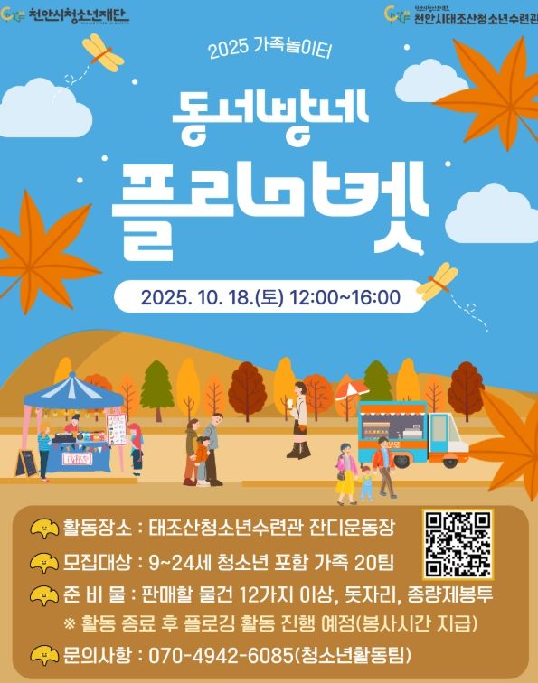 (포탈뉴스통신) (재)천안시청소년재단은 오는 18일 천안시태조산청소년수련관 잔디운동장에서 ‘동네방네 플리마켓’을 개최한다.