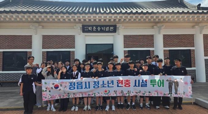 정읍시는 이날 소성초등학교(18명)와 태인중학교(36명) 학생들과 함께하는 ‘청소년 현충 시설 투어’를 진행했다.