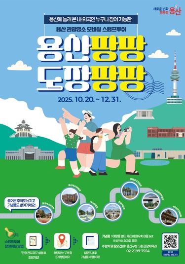 (포탈뉴스통신) 서울 용산구가 오는 20일부터 12월 31일까지 용산의 주요 관광명소를 모바일로 즐길 수 있는 ‘용산 팡팡! 도장 팡팡! 2025 용산구 관광명소 모바일 스탬프투어’를 운영한다.