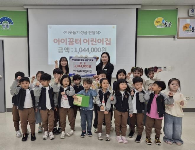 (포탈뉴스통신) 양평군 용문면은 지난 20일 용문면 소재 아이꿈터 어린이집이 주최한 ‘소소한 기쁨, 특별한 만남, 행복 나눔 작은 장터’ 바자회를 통해 마련된 수익금 1,044,000원을 용문면에 기탁했다고 밝혔다.