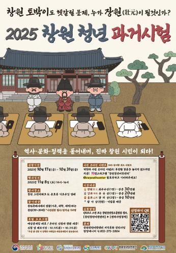 (포탈뉴스통신) 창원청년비전센터는 오는 11월 8일 창원 스펀지파크와 용지동 가로수길 일원에서 ‘2025 창원 청년 과거시험’을 개최한다.
