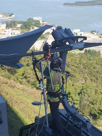 (포탈뉴스통신) 진도소방서는 10월 20일 명량해상케이블카 진도스테이션에서 삭도시설 민관합동 구조훈련을 실시했다. 이번 훈련은 전국적으로 노후화가 진행 중인 관광용 삭도설비와 최근 증가하는 설치 현황에 대응하기 위해 마련됐다.