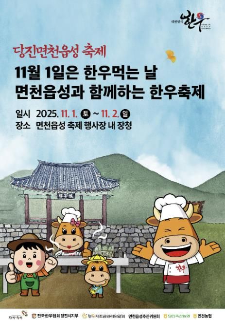 오는 10월 24일부터 26일까지는 삽교천 댄스·뮤직 페스티벌 현장에서‘2025 대한민국 한우먹는날 소프라이즈 한우 할인행사’를, 이어 11월 1일부터 2일까지는 면천읍성 축제 현장에서‘면천읍성과 함께하는 한우축제’를 개최한다.