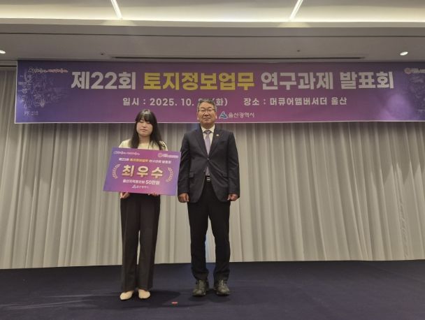 (포탈뉴스통신) 울산 동구가 지난 10월 21일 열렸던 ‘2025년 울산시 토지 정보 업무 연구과제 발표회’에서 최우수 과제로 선정되어 울산시장 표창을 받았다.