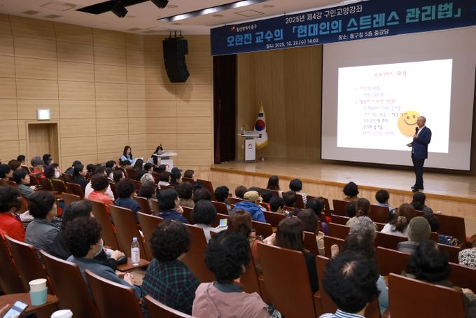 (포탈뉴스통신) 울산 동구는 10월 22일 오후 2시 5층 중강당에서 오한진 교수의 ‘스트레스 관리법’이라는 주제로 강연을 개최했다.