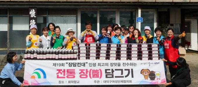 (포탈뉴스통신) 대전 대덕구 여성단체협의회(회장 이순화)는 22일 회덕향교에서 ‘전통 장(醬) 나눔 행사’를 열고 지역 내 홀몸 어르신, 한부모 가정, 다문화가정 등 60가구에 된장과 간장을 전달했다고 밝혔다.