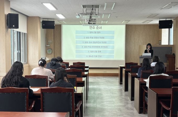 연수는 교사관찰추천제의 전반적인 이해를 바탕으로 관찰 체크리스트 활용법, GED 시스템을 통한 선발 절차 등 실질적인 내용을 중심으로 진행됐다. 이를 통해 교사들이 객관적이고 공정한 선발을 적용할 수 있도록 지원했다.