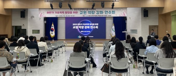 (포탈뉴스통신) 경산교육지원청 경산기초학력거점지원센터는 2025년 10월 22일(수) 경산교육지원청 학생교육지원관 2강당에서 교원 역량 강화 연수회를 개최했다. 이날 행사에는 경산 관내 초·중학교 기초학력 담당 교원과 담임교사, 희망 교원들이 참석했다.