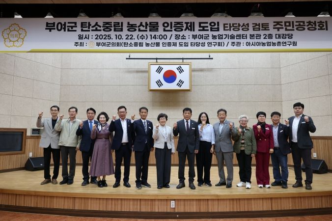 (포탈뉴스통신) 부여군의회는 22일 부여군농업기술센터 대강당에서 ‘탄소중립 농산물 인증제 도입 타당성 검토’를 주제로 한 주민공청회를 개최했다.