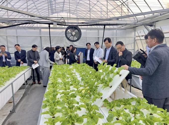 이어 석문면에 있는 ‘당진시 스마트팜사관학교’를 찾아, 청년 농업인의 실습 교육 및 창업 지원을 위한 스마트팜 온실과 복합환경제어 시스템을 확인했다.