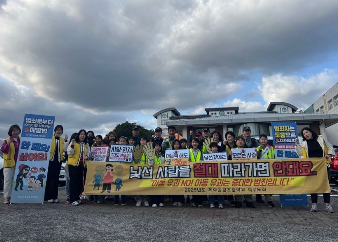 (포탈뉴스통신) 제주도교육청 동광초등학교는 27일 등굣길에 학부모회와 전교어린이회, 교직원, 동부경찰서가 함께 참여한 어린이 유괴예방 캠페인을 실시했다.
