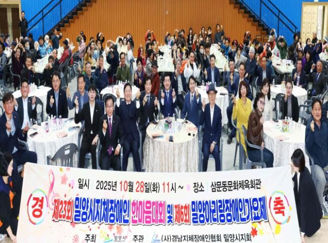 (포탈뉴스통신) 경남 밀양시는 28일 밀양문화체육회관에서 (사)경남지체장애인협회 밀양시지회 주관으로 ‘제23회 지체장애인 한마음 단합대회 및 제6회 밀양아리랑 장애인가요제’를 개최했다고 밝혔다.