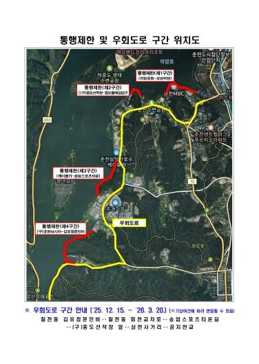 (포탈뉴스통신) 춘천시가 겨울철 노면 결빙으로 인한 사고를 예방하기 위해 주요 도로와 자전거도로 일부 구간의 통행을 제한한다. 결빙 위험이 높은 도로는 4일부터 내년 3월 20일까지 단계적으로 통제에 들어가며 자전거도로는 오는 15일부터 제한된다.