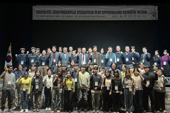 (포탈뉴스통신) 경상국립대학교 ICT혁신인재사업단과 S2X인공지능기반유무인복합체계교육연구단(이하 BK21 STAR사업단)(양 사업단 단장 이왕상 전자공학부 교수)은 12월 5~6일 쏠비치 남해에서 ‘2025년도 경상국립대학교 전자공학과 주관 인력양성사업 성과공유 워크숍’을 개최했다.