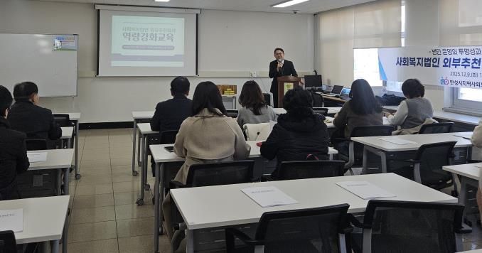 (포탈뉴스통신) 지난 9일, 안성시지역사회보장협의체는 한경국립대학교 산학협력관에서 ‘사회복지법인 외부추천이사 및 후보의 역량강화 교육’을 진행했다.