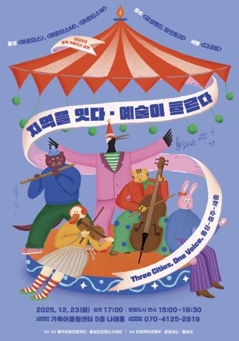 이번 공연에는 홍성의 아르티스, 아르티스M, 아르티스W, 충주의 감성밴드 파인트리, 세종의 현악 5중주 디네트가 참여한다. 각 단체는 도시별 특색을 살린 공연을 선보이며, 연말과 크리스마스를 맞아 시민들에게 따뜻한 위로와 기억에 남는 문화적 경험을 선사할 예정이다. 이를 통해 충청권 문화도시 간 지속 가능한 문화교류 모델을 제시하고, 향후 정례적인 광역 협력 사업으로 확장할 수 있는 기반을 마련하고자 한다.
