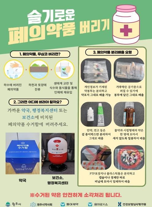 (포탈뉴스통신) 원주시는 가정에서 배출되는 유통기한 지난 폐의약품을 안전하게 처리하기 위하여 올바른 분리배출 방법 홍보에 나섰다.