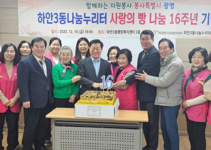 (포탈뉴스통신) 광명시 하안3동 나눔누리터는 광명시자원봉사센터, 하안3동 행정복지센터와 함께 지난 19일 하안3동 행정복지센터 2층 회의실에서 ‘사랑의 빵 나눔’ 16주년 기념식을 개최했다.