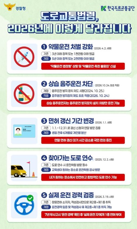 (포탈뉴스통신) ① 약물운전 처벌 강화(2026.4.2. 시행)