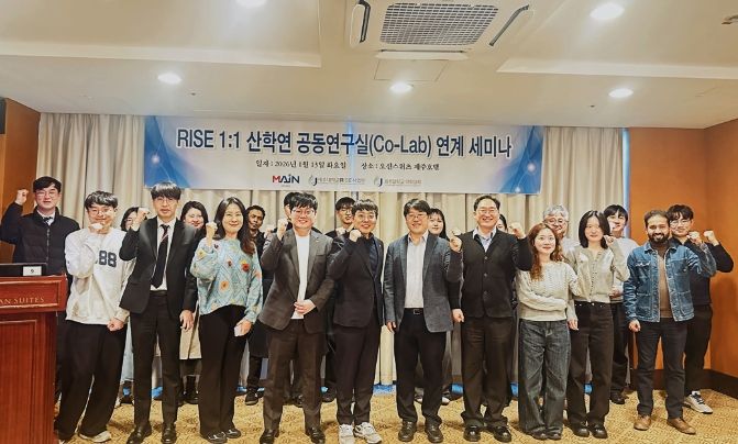 (포탈뉴스통신) 지역과 대학의 동반 성장을 목표로 제주 RISE사업에 참여하고 있는 제주대학교 RISE사업단(이하 ‘사업단’) 미래전략3팀의 ‘1:1 산학연 공동연구실 Co-Lab 구축’ 프로그램의 ‘제주대학교 약학대학 약제학 연구실(생체이용률조절연구실)’은 ㈜메인과 지난 1월 13일, 약학 및 바이오·헬스케어 분야 연구 협력 강화를 위한 업무협약(MOU)를 체결하고 사업단의 1:1 산학연 공동연구실 Co-Lab 연계 공동 세미나를 개최했다고 밝혔다.