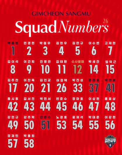 (포탈뉴스통신) 김천상무가 2026시즌 프로선수단 배번을 공개했다.
