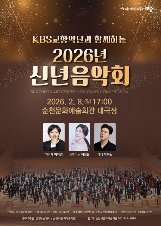 (포탈뉴스통신) 순천시는 2026년 새해를 여는 첫 공연으로 대한민국을 대표하는 KBS교향악단 클래식공연을 오는 2월 8일(일) 오후 5시 순천문화예술회관 대극장에서 개최한다고 밝혔다.