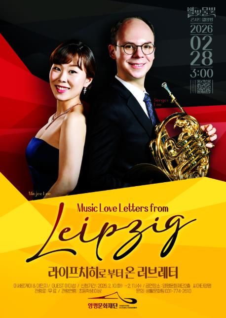 (포탈뉴스통신) 양평문화재단은 오는 28일 오후 3시, 양평문화재단 2층 시어터양평에서 ‘별빛물빛 콘서트 in 양평’ 2월 정기공연으로 클래식 공연 《라이프치히로부터 온 러브레터(Music Love Letters from Leipzig)》를 선보인다.