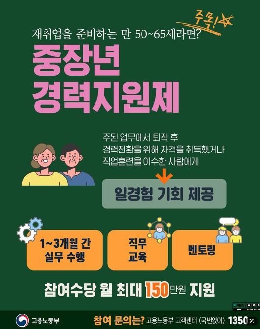 (포탈뉴스통신) ■ 재취업을 준비하는 만 50~65세라면? 중장년 경력지원제