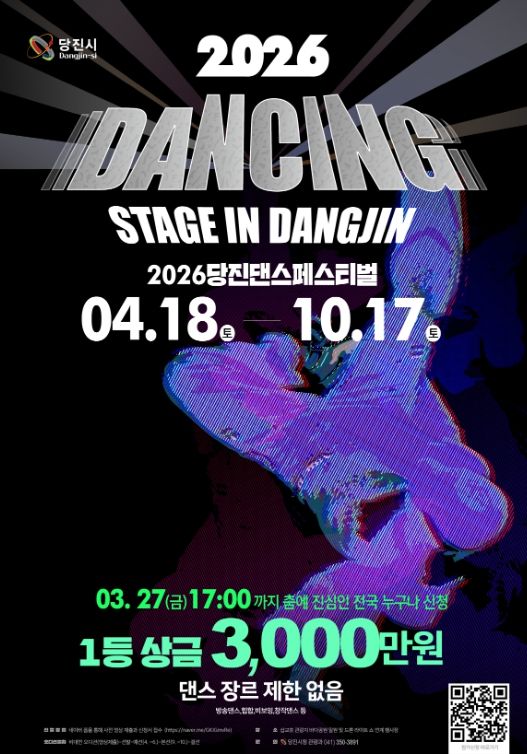 (포탈뉴스통신) 당진시는 ‘2026 댄싱 스테이지 in 당진(이하 댄스당진)’ 참가자를 3월 27일까지 모집한다고 26일 밝혔다.