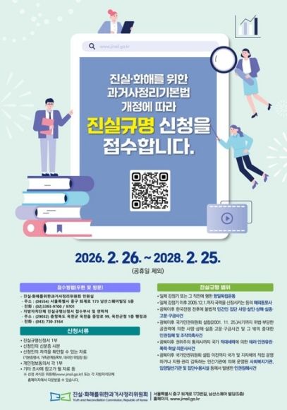 (포탈뉴스통신) 옥천군은 '진실·화해를 위한 과거사정리 기본법' 시행에 따라 2026년 2월 26일부터 과거사 진실규명 신청을 접수한다고 밝혔다.