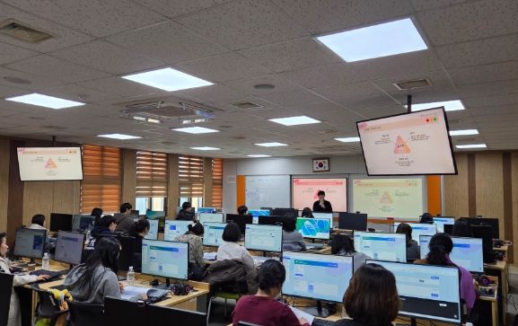 연수는 ▲영어(인공지능 기반 읽기 학습) ▲수학(인공지능 활용 학습 진단 및 맞춤 지도) ▲국어(인공지능 활용 글쓰기 및 문해력 강화), 공통(실시간 참여형 수업 도구와 디지털 활동지 제작) 등 분야별 실습으로 구성돼 교사들이 교육정보기술을 활용한 수업 역량을 기를 수 있도록 했다.