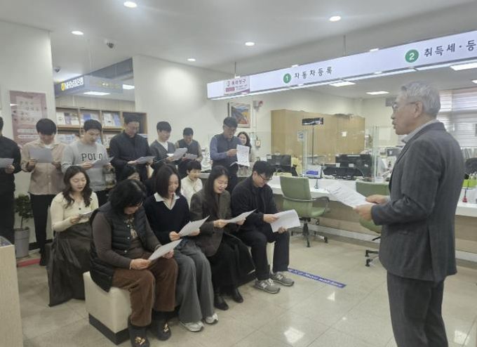 교육은 김인식 민원과장의 주도로 △공직자 민원 응대 기본원칙 숙지 △방문·전화 민원 시 배려 표현 사용법 △친절 마인드 함양 등 실질적인 응대 역량 강화를 중심으로 진행됐다. 이를 통해 직원들은 친절 서비스의 중요성을 다시 한번 인식하고 민원인 중심의 행정 실천 방안을 공유하는 시간을 가졌다.