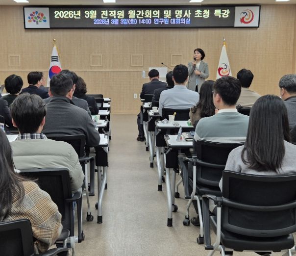 충남역사문화연구원은 전 직원 월간 회의 시에 명사 초청 특강을 지속적으로 운영하여 직원들의 정책 이해도와 직무 역량을 높이고, 기관 경쟁력 강화를 위한 교육을 이어가고 있다.