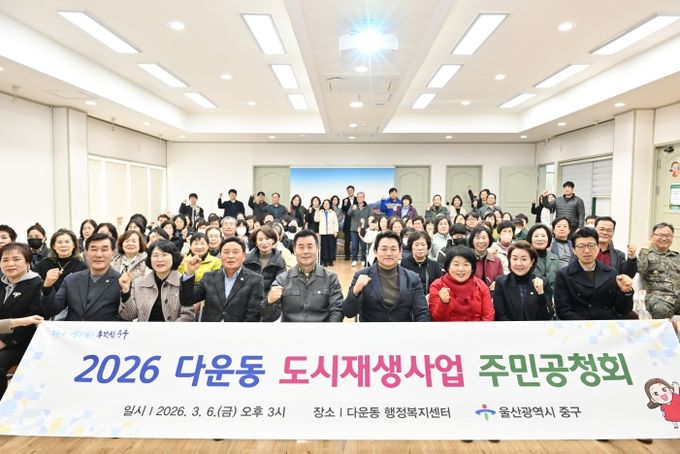 (포탈뉴스통신) 울산 중구가 3월 6일 오후 3시 다운동 행정복지센터 2층 강당에서 ‘다운동 도시재생 활성화계획’ 변경 수립을 위한 주민공청회를 개최했다.