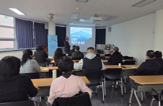 첫 회차가 열린 6일에는‘서귀(西歸), 전설이 역사가 된 순간’을 주제로 서귀포의 형성과 전설에 대한 강연이 진행돼 서귀포에서 가장 오래된 마을로 알려진 홍로마을의 역사와 발자취를 살펴보고 불로초 전설과 관련 기록을 통해 전설 속에 담긴 역사적 의미를 함께 탐구하는 시간이 마련됐다.
