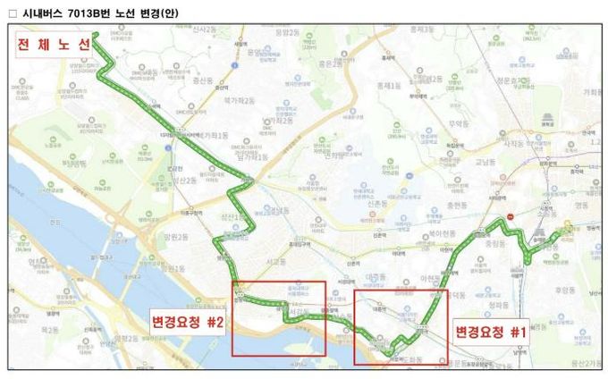 이에 구는 7013B번 버스 노선 일부를 조정해 대흥역, 마포세무서, 신석초등학교 일대 등 기존 노선에서 접근이 어려웠던 구간을 학교 밀집 지역과 보다 가깝게 연결하는 방안을 서울시에 제안했다.