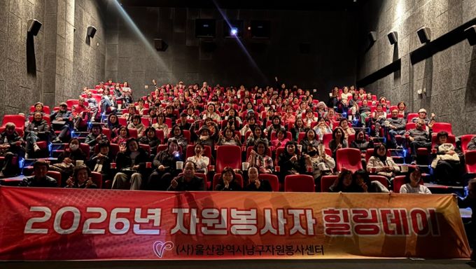 (포탈뉴스통신) (사)울산남구자원봉사센터는 10일 CGV울산삼산점에서 지역사회에서 활발한 봉사활동을 펼쳐 온 자원봉사자 146명을 초청해 ‘2026년 상반기 자원봉사자 힐링데이’를 개최했다.