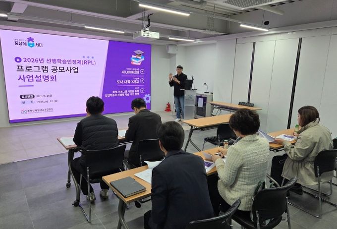 (포탈뉴스통신) 충북인재평생교육진흥원은 3월 10일에 충북인평원 대회의실에서 2026년 선행학습인정제(RPL) 프로그램 공모사업의 사업설명회를 개최했다.